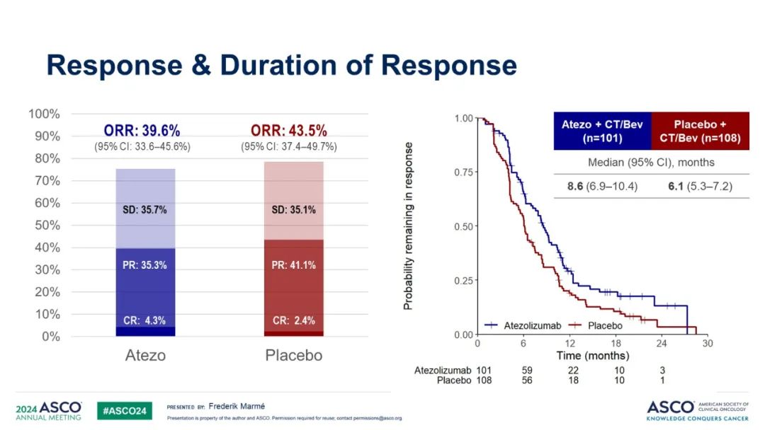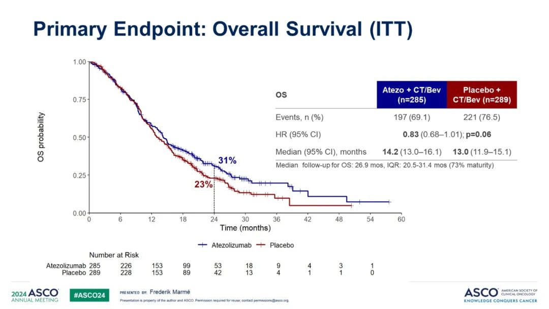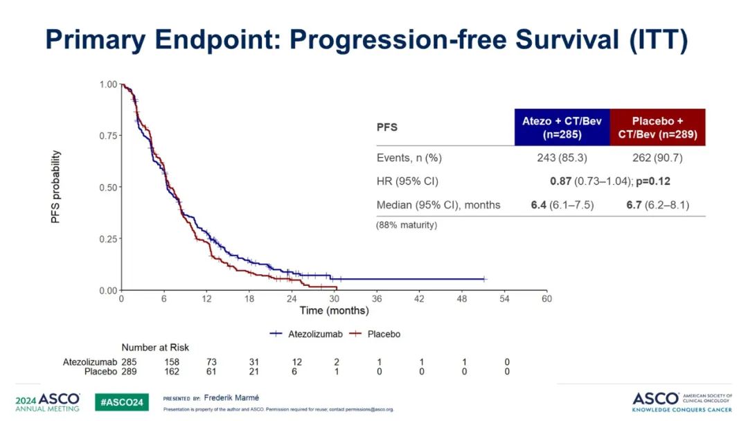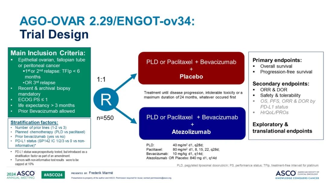 MarméF,et al.Atezolizumab versus placebo incombination with bevacizumab and non-platinum-based chemotherapy in recurrent ovarian cancer:final overall and progression-free survival results from the AGO-OVAR2.29/ENGOT-ov34 study.J Clin Oncol.2024;42(suppl17):LBA5501.doi:10.1200/JCO.2024.42.17_suppl.LBA5501