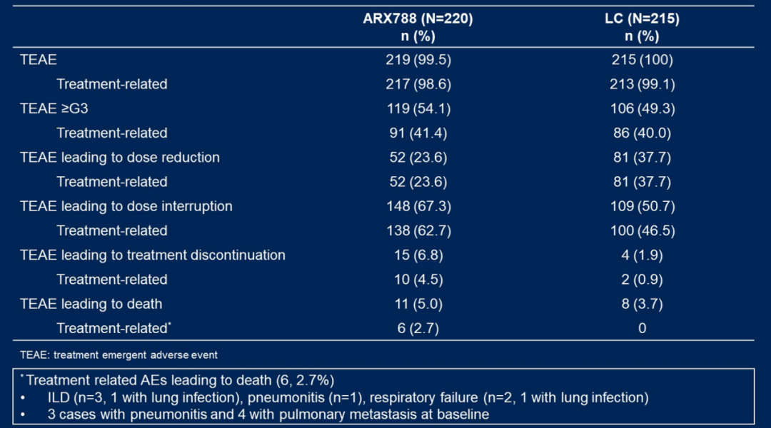 △ARX788的治疗期间不良事件(TEAEs)汇总