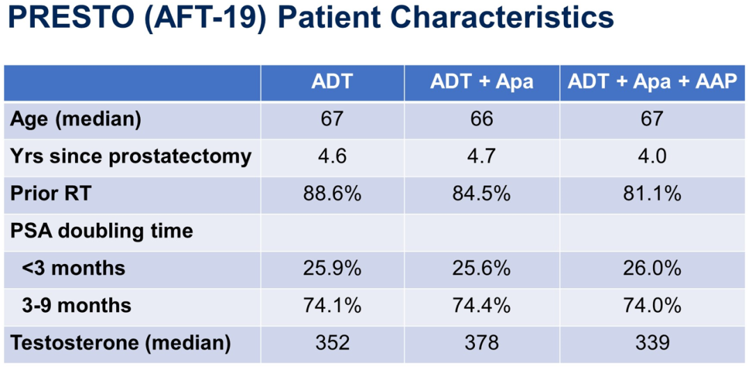 ADT联合阿帕他胺,或ADT联合阿帕他胺和醋酸阿比特龙和泼尼松至52周的强化ADT治疗,可改善患者的PSA无进展生存期,但并未对HRQOL产生负面影响。这些HRQOL结果进一步支持对高危生化复发前列腺癌患者进行强化ADT治疗。