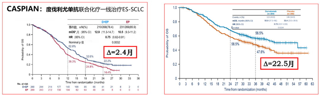 为什么采用同一免疫治疗药物的联合方案,LS-SCLC患者的OS获益比ES-SCLC更多?CASPIAN研究的中位OS差异为2.4个月(12.9个月vs 10.5个月),ADRIATIC研究的中位OS差异为22.5个月(55.9个月vs 33.4个月)。这是因为疾病分期的差异,生物学差异(LS-SCLC炎症型更多),还是放疗的作用?