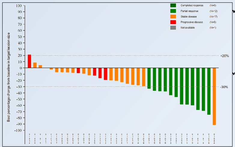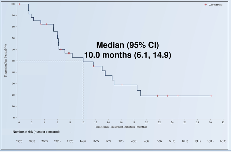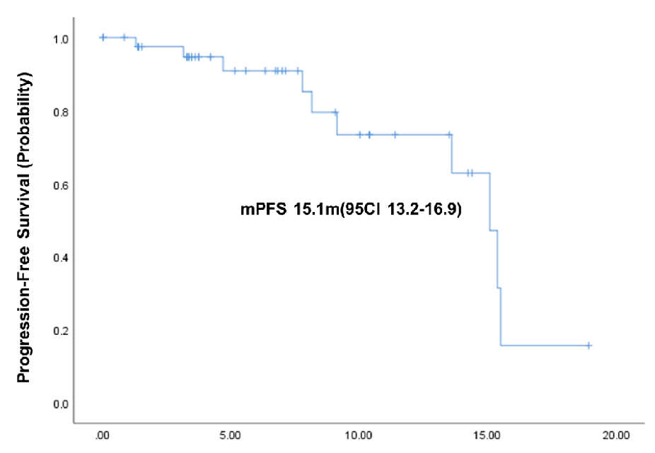 其次,国际上对于肾癌患者的一线治疗通常采用靶免联合治疗或以免疫检查点抑制剂为基础的治疗策略;但是中国仍然有许多患者一线采用单纯的靶向治疗。这些患者的后线治疗,是应该采用免疫联合治疗还是继续靶向治疗联合其他治疗,目前并无确切的循证医学证据。基于此,我们团队采用卡瑞丽珠单抗加阿帕替尼治疗那些一线酪氨酸治疗激酶抑制剂治疗失败的进展期肾细胞癌患者[3];研究结果表明,ORR为34.3%(95%CI:19.1~52.2),中位PFS为10.0个月(95%CI:6.1~14.9)。目前研究仍在继续进行,有望为患者带来更长获益。