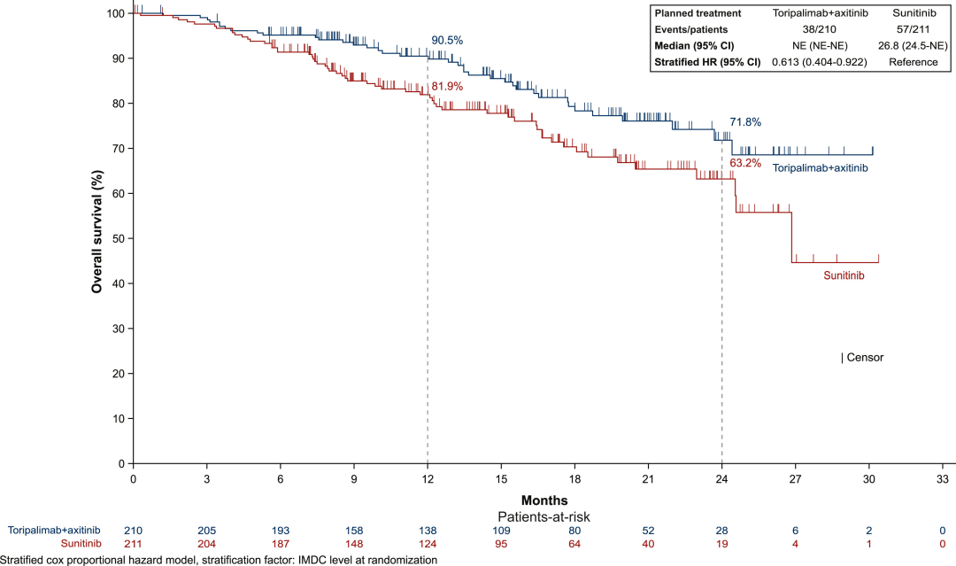 《肿瘤瞭望》:既往研究表明阿维鲁单抗联合阿昔替尼可改善晚期肾癌PFS。今年ASCO大会也公布了最终OS结果,请你分享下该方案的疗效和安全性。
