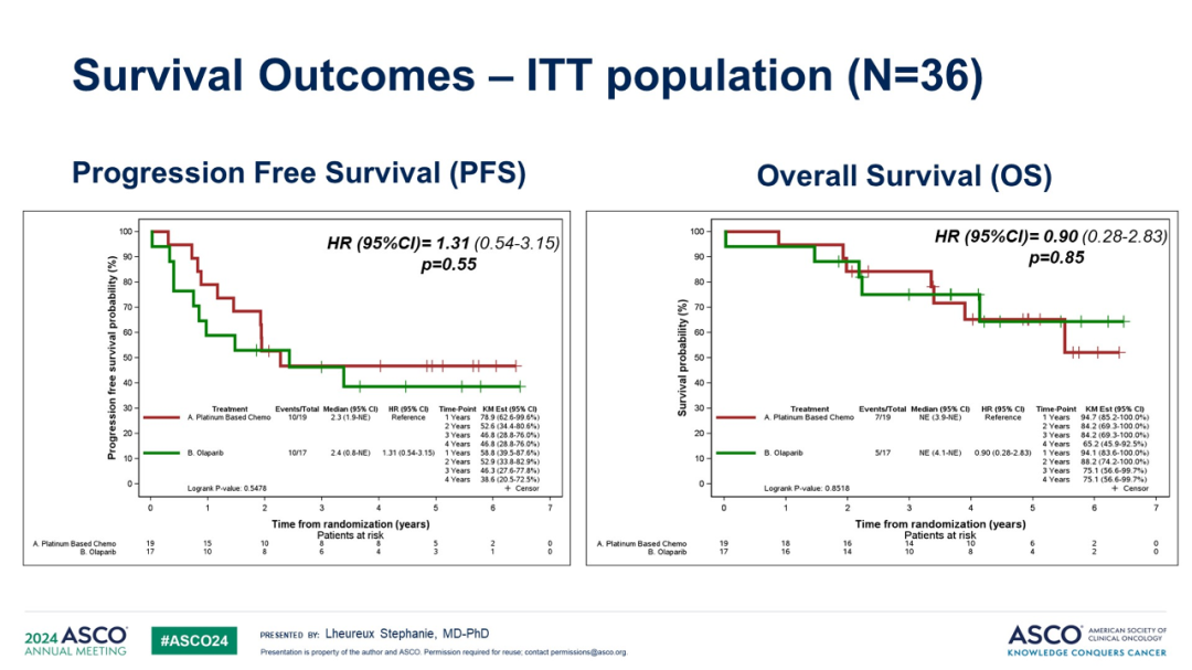 NEO研究的更大意义在于转化医学研究,即观察PARP抑制剂新辅助治疗带来的肿瘤分子生物学水平的变化;对于探索哪些患者能在一线豁免化疗可能会有一些提示。在铂敏感复发阶段,因为BRCA突变患者在一线基本使用过PARP抑制剂,在后线使用PARP抑制剂的情况会更少。