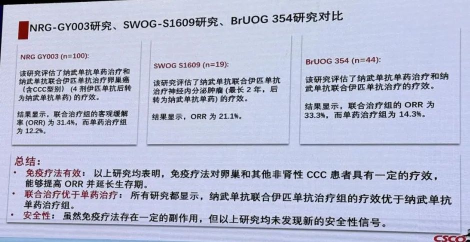 免疫疗法有效:以上研究均表明,免疫疗法对卵巢和其他非肾性CCC患者具有一定的疗效,能够提高ORR并延长生存期;