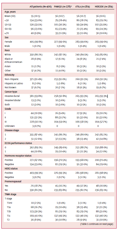 此外,研究者还分析了PAM50基因以确定具体亚型(luminal A、luminal B、HER2富集或基底细胞型),并根据国际TIL工作组指南,评估了sTILs,还对3例远处复发的患者的5个可用肿瘤样本进行了全外显子组测序(WES)。