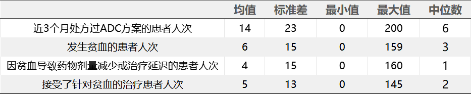 在此次调研中,当前所有参与调研医院的ADC可及率为42%,三甲医院略高,为50%。处方过ADC的医生共有125名,调研显示近3月所处方ADC的中位数为6次,中位3例发生贫血,2例得到纠正治疗,1例出现因贫血导致的治疗药物剂量减少或延迟。
