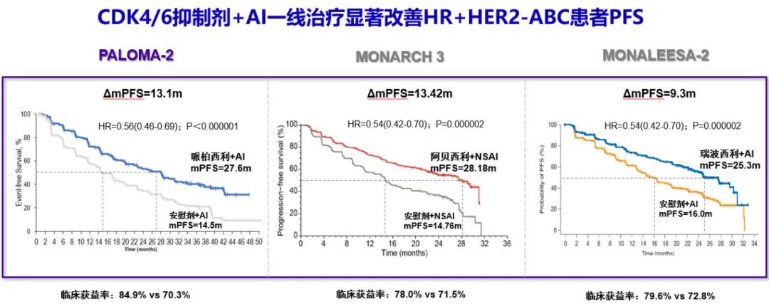 PALOMA-2、MONARCH 3和MONALEESA-2试验数据[1-3]