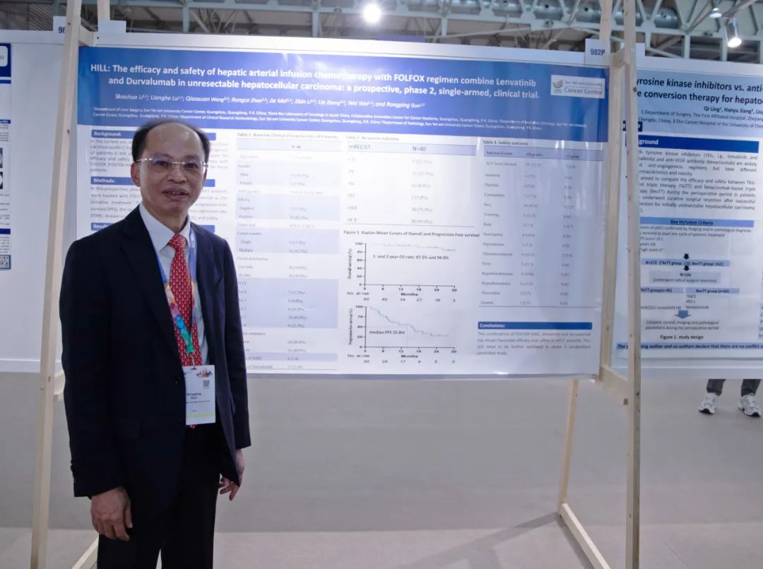 HIMALAYA等研究的公布,引领着晚期肝癌进入双免治疗时代。而中国肝癌患者中晚期居多,如何优选包括度伐利尤单抗在内的系统治疗联合局部治疗方案,从而进一步改善患者获益,成为目前的研究热点。2024年欧洲肿瘤内科学会(ESMO)年会于9月13日至17日在西班牙巴塞罗那召开,中山大学附属肿瘤医院郭荣平教授团队的HILL研究入选大会壁报展示(982P),结果证实,通过度伐利尤单抗联合仑伐替尼和HAIC治疗,2年OS率高达94%且临床副作用较小,为晚期肝癌患者贡献了中国智慧与力量。《肿瘤瞭望》特邀郭荣平教授进行深度分享。