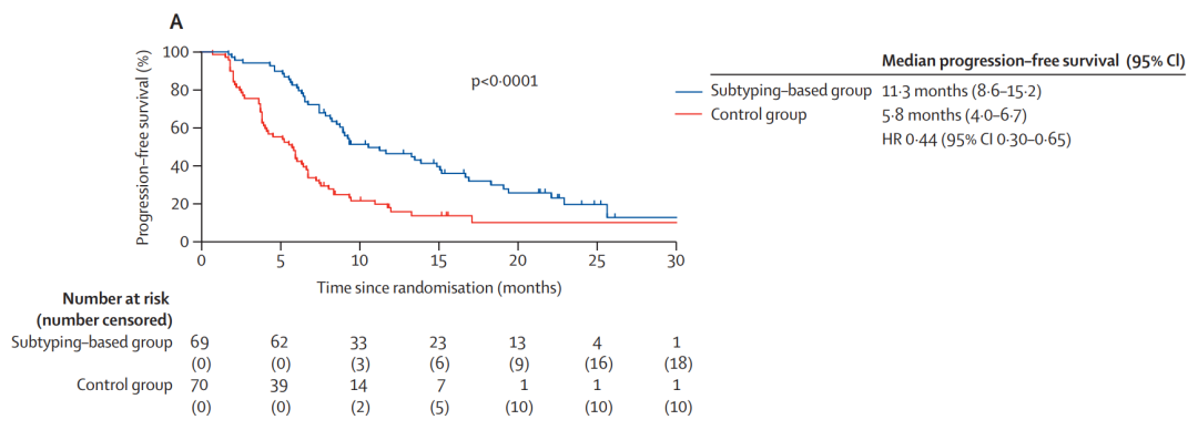 邵志敏教授团队于2019年提出了TNBC的复旦分型(FUSCC):腔面雄激素受体型(LAR)、免疫调节型(IM)、基底样免疫抑制型(BLIS)和间质型(MES)。随后逐步开展临床研究验证,既往报道的FUTURE、FUTURE-C-Plus研究为伞型单臂研究,而2024年发表于Lancet Oncology的FUTURE-SUPER研究则是一项伞型随机对照试验。该研究针对晚期TNBC不同FUSCC亚型患者使用不同的精准治疗方案(见下图),结果显示与当前标准化疗(白蛋白结合型紫杉醇)相比,FUSCC精准治疗策略能够显著延长PFS(11.3 vs 5.8个月,HR 0.44,95%CI:0.30~0.65,P<0.0001)。这些临床研究有望推动复旦分型进一步走进临床实践。