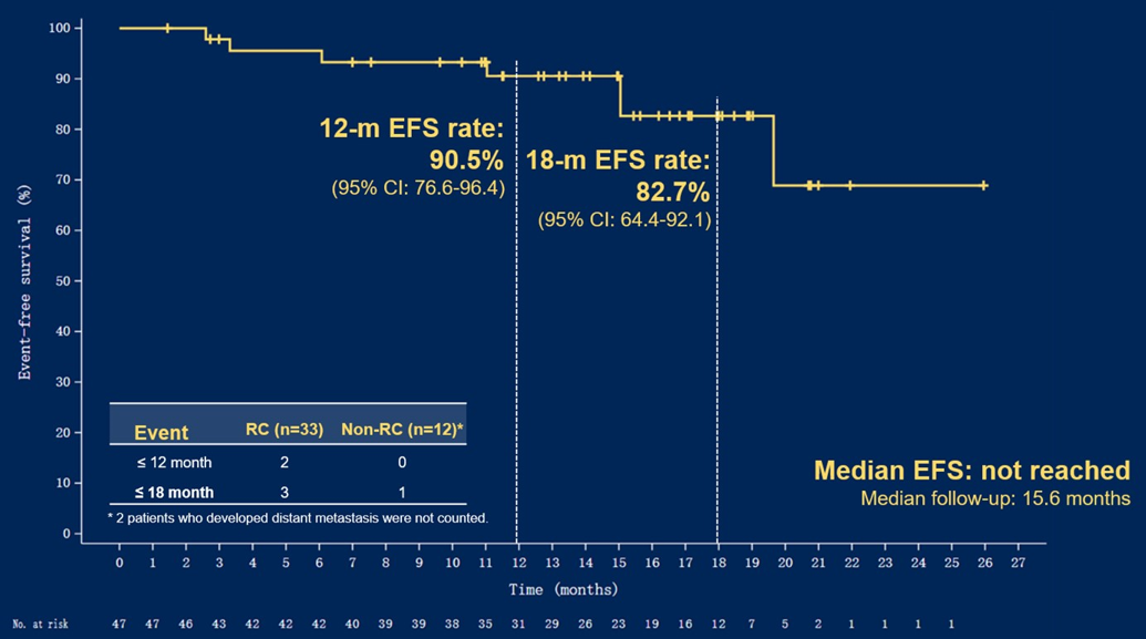 在本届ASCO GU年会上,来自中国多中心共同参与的一项研究入选,该临床试验采用RC48联合特瑞普利单抗方案,这也是全球首次报道ADC联合免疫新辅助治疗尿路上皮癌中的应用。盛锡楠教授在大会上展示了这一新辅助治疗方案的研究成果,显示pCR率达到63.6%,且长期EFS率令人印象深刻,国外同道评价这一结果“really really impressive”和“very very impressive”。之所以能取得如此显著的效果,是因为在过去的化疗时代,无论是DVAC方案、GC方案,还是最近报道的一项GC联合免疫方案,其pCR率大多低于40%。而RC48-C017研究的新辅助方案首次将pCR率提升至63.6%,这一突破令人兴奋和激动。