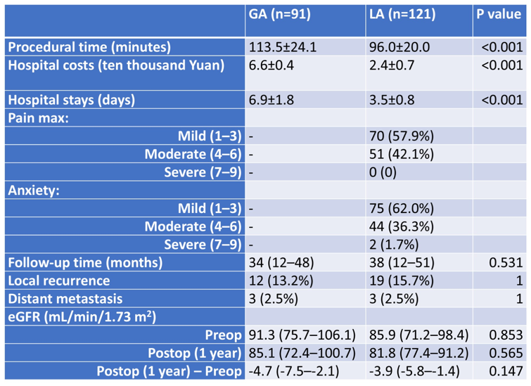 此外,我们现已逐渐采用局部麻醉进行射频消融,发现既往无法接受射频消融的患者在此状态下亦能耐受。因此,我们认为对于无法接受全身麻醉的特殊患者,尤其是高龄患者,射频消融在肾小肿瘤治疗中具有独特优势。