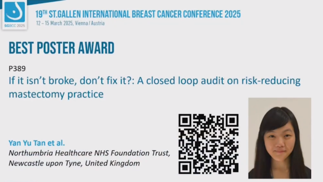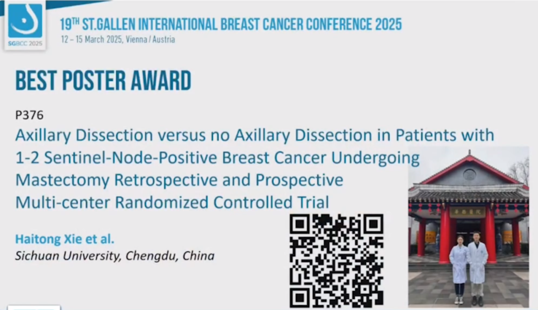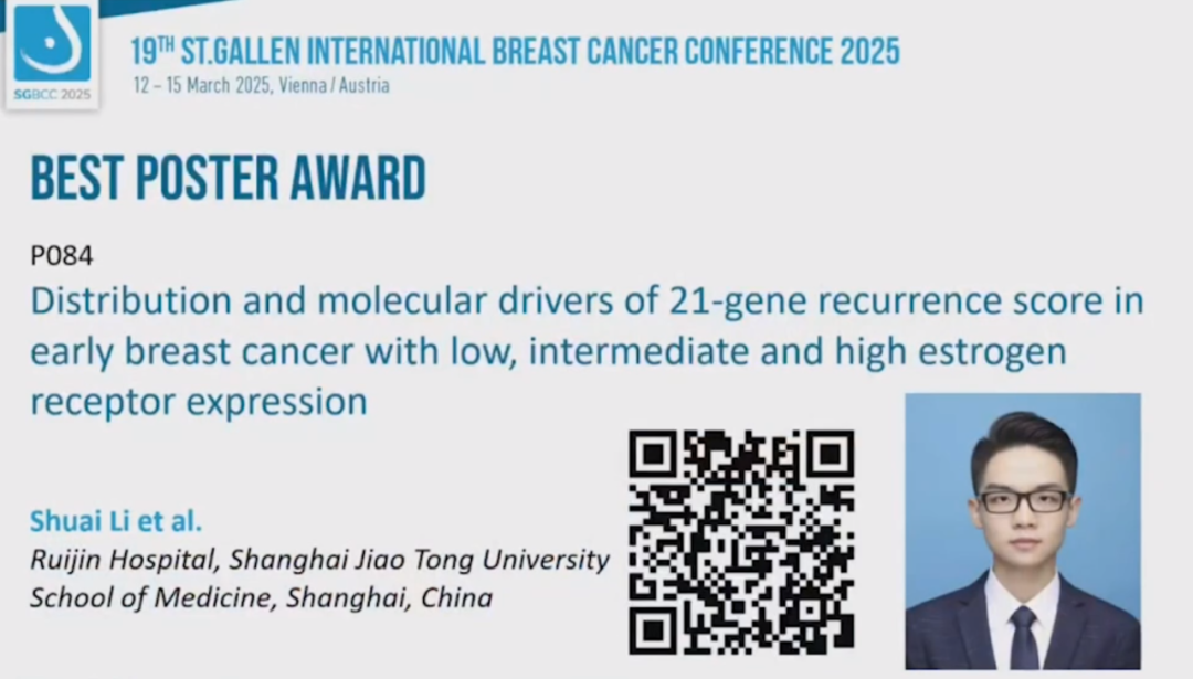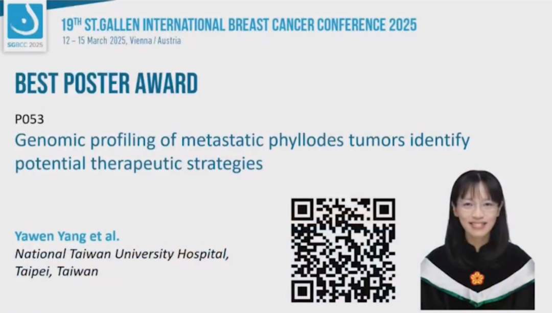 当地时间2025年3月13日16:35-16:45(北京时间23:35-23:45),“2025 SGBCC最佳壁报奖”隆重揭晓。本届SGBCC共接收了482篇壁报,其中7篇壁报脱颖而出,摘取桂冠。其中包括了4名中国专家所发表的壁报,分别为中国医学科学院肿瘤医院樊英教授、上海交通大学医学院附属瑞金医院李帅教授、四川大学华西医院Haitong Xie教授、国立台湾大学医学院附设医院杨雅雯教授。恭喜所有的获奖专家!