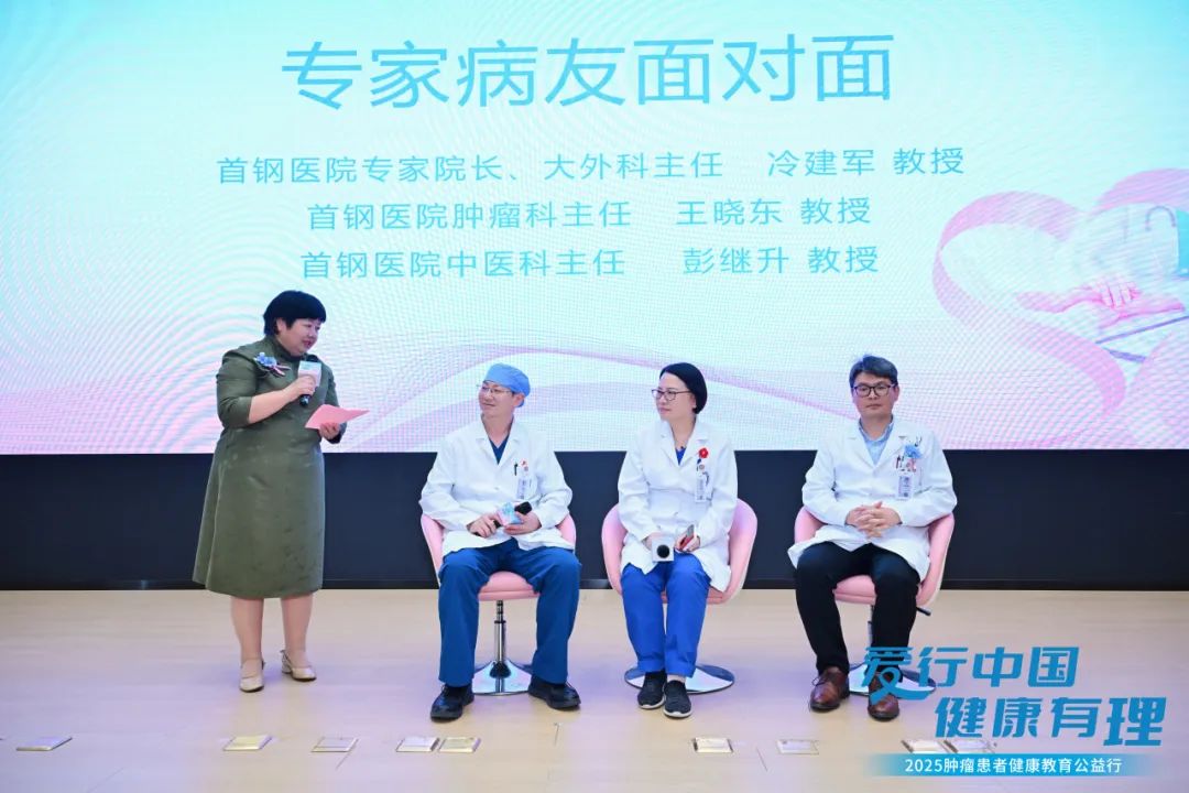 “专家病友面对面”环节中,首钢医院专家院长、大外科主任冷建军教授,肿瘤科主任王晓东教授,中医科主任彭继升教授与病友交流,传递专业医疗建议。现场的病友积极提问,专家们耐心的给予专业的答疑解惑,帮助病友解开心结。
