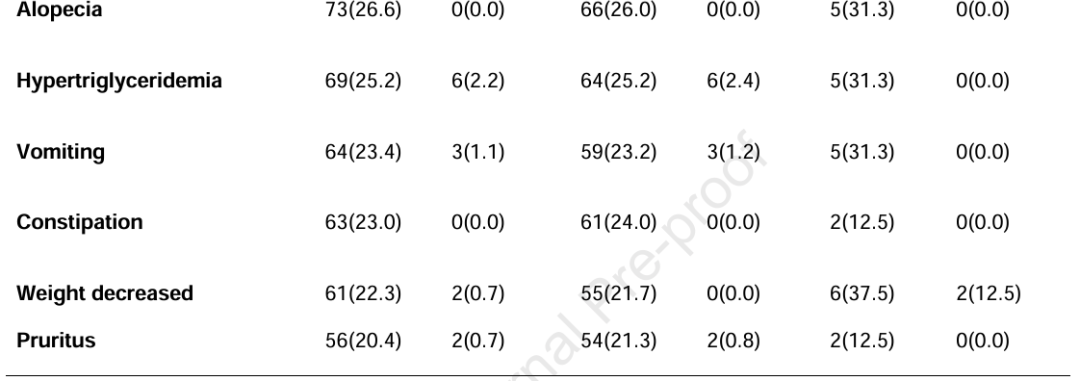 表2.常见(≥20%)治疗相关不良事件