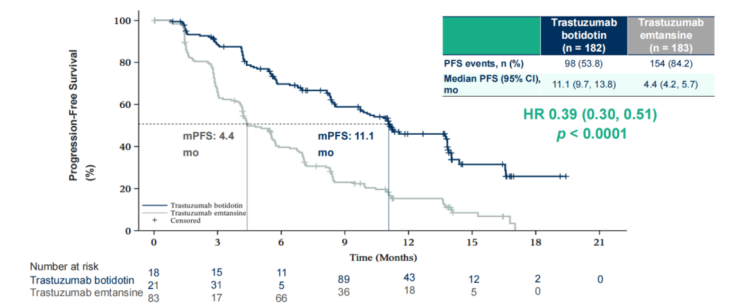 《肿瘤瞭望》:胡教授您好,非常感谢您带来这项备受瞩目的Ⅲ期研究。作为首个头对头对比博度曲妥珠单抗与恩美曲妥珠单抗(T-DM1)的研究,其预设期中分析已显示博度曲妥珠单抗在PFS上有显著改善。能否请您具体解读一下本次ESMO公布的完整研究数据?