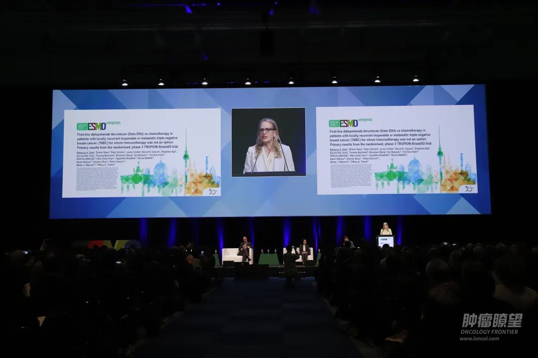 编者按:三阴性乳腺癌(TNBC),一个经常令患者闻之色变、使医生束手无策的高度恶性肿瘤,亟需更多新型治疗方案以提升疗效、延长患者生存期。在当前的晚期一线治疗中,仍有将近七成的转移性TNBC(mTNBC)不适合免疫治疗,仅靠毒性大、疗效有限的化疗难以阻挡肿瘤进展的速度。在2025年ESMO大会上,全球肿瘤学家的目光聚焦于TROPION-Breast02等重磅研究,见证Trop2抗体偶联药物(ADC)即将改变一线治疗格局,尤其是德达博妥单抗(Datopotamab deruxtecan,Dato-DXd)成为首个mTNBC一线治疗获得PFS和OS双阳性结果的新型ADC。江苏省人民医院黄香教授和上海交通大学医学院附属仁济医院殷文瑾教授,在亲历ESMO重磅研究报告后,在大会现场第一时间接受《肿瘤瞭望》的邀请,对Trop2 ADC用于不适合免疫治疗的mTNBC患者一线治疗的研究进展进行深入解读。