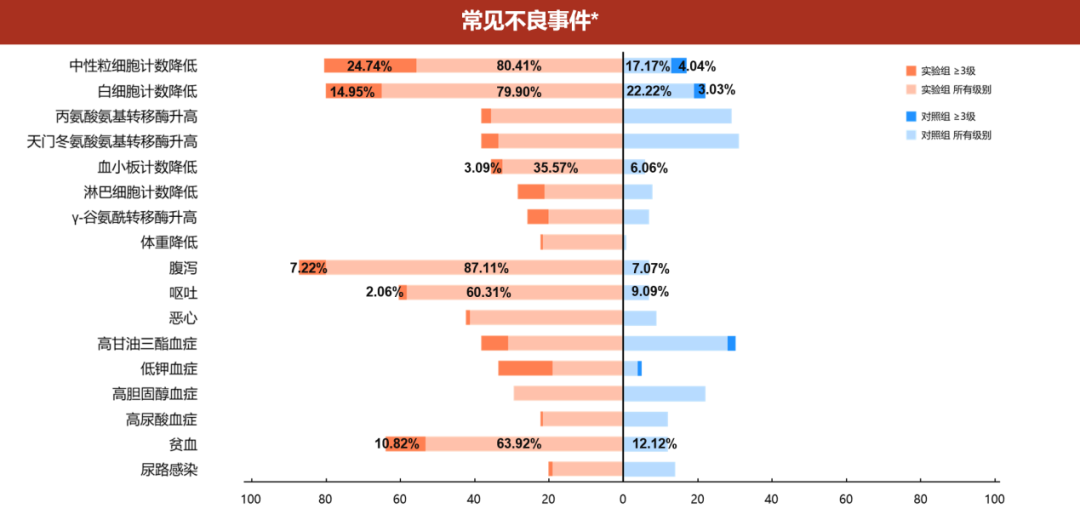 在安全性方面,库莫西利联合氟维司群组治疗相关不良事件(TRAEs)多为1-2级,主要≥3级治疗期间不良事件(TEAE)为中性粒细胞降低,发生率仅为24.74%;贫血(10.82%);腹泻(7.22%);未见因不良事件导致的治疗终止,较传统CDK4/6i具有更低的骨髓抑制风险,为长期治疗的依从性提供了有效保障。
