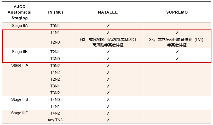 值得注意的是,NATALEE研究所纳入的N0及N1患者,与SUPREMO研究中可考虑豁免胸壁放疗的“中危”患者高度重合(如下图所示):