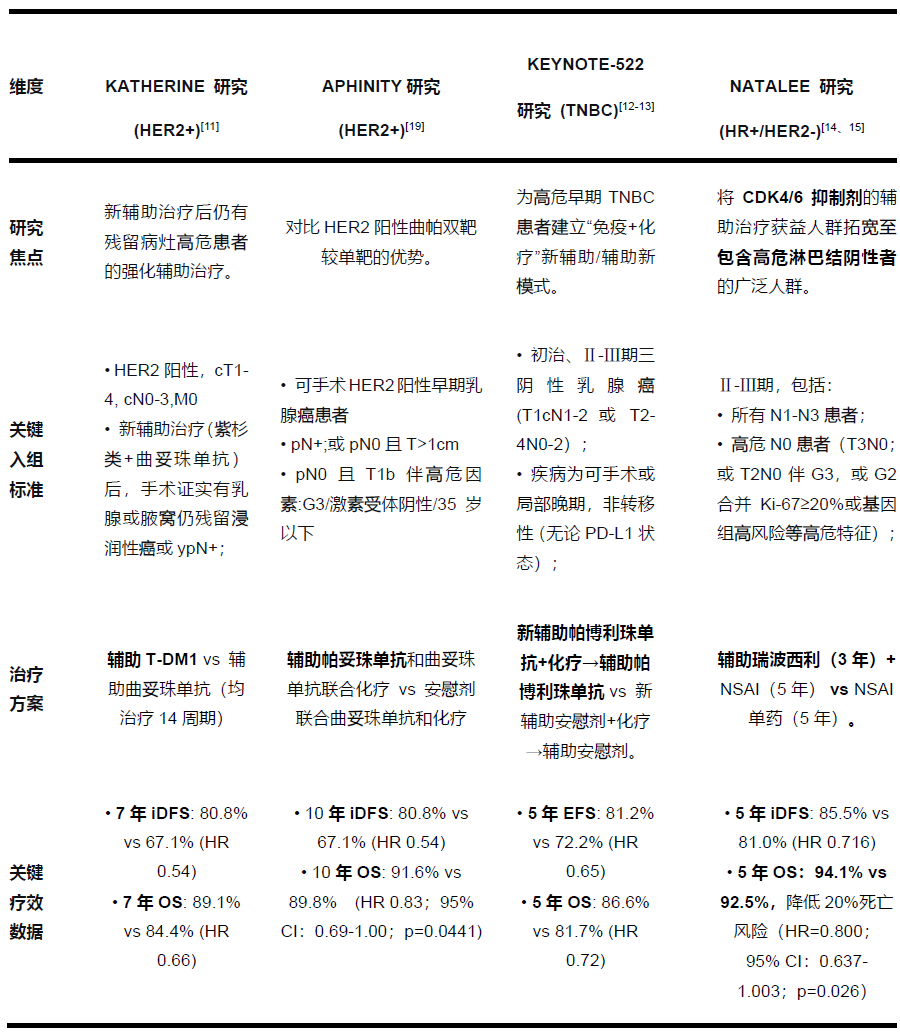 表1.早期乳腺癌辅助/新辅助治疗研究关键信息对比