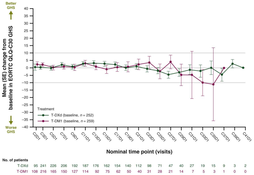 △DB-03研究PROs分析中的EORTC QLQ-C30全球健康评分(GHS score)变化情况