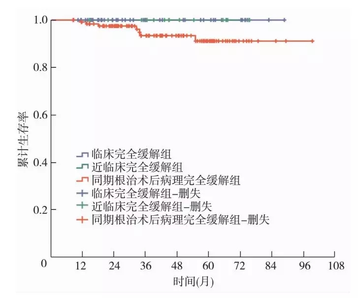 图2. cCR组和near-cCR组患者3年CSS与ypCR组直肠癌患者的3年CSS的比较