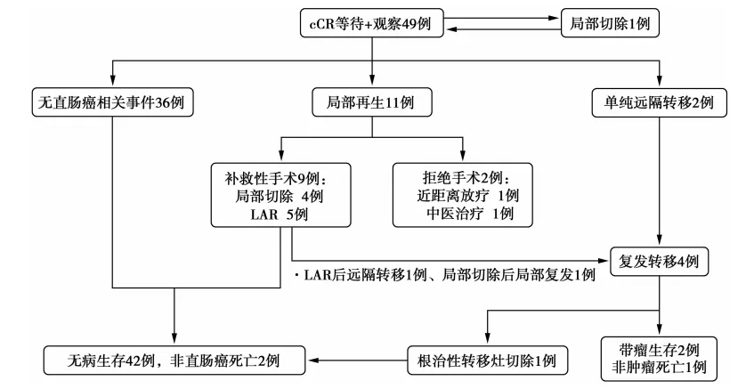 图3. 放化疗后评效为cCR患者的49例患者的治疗及转归