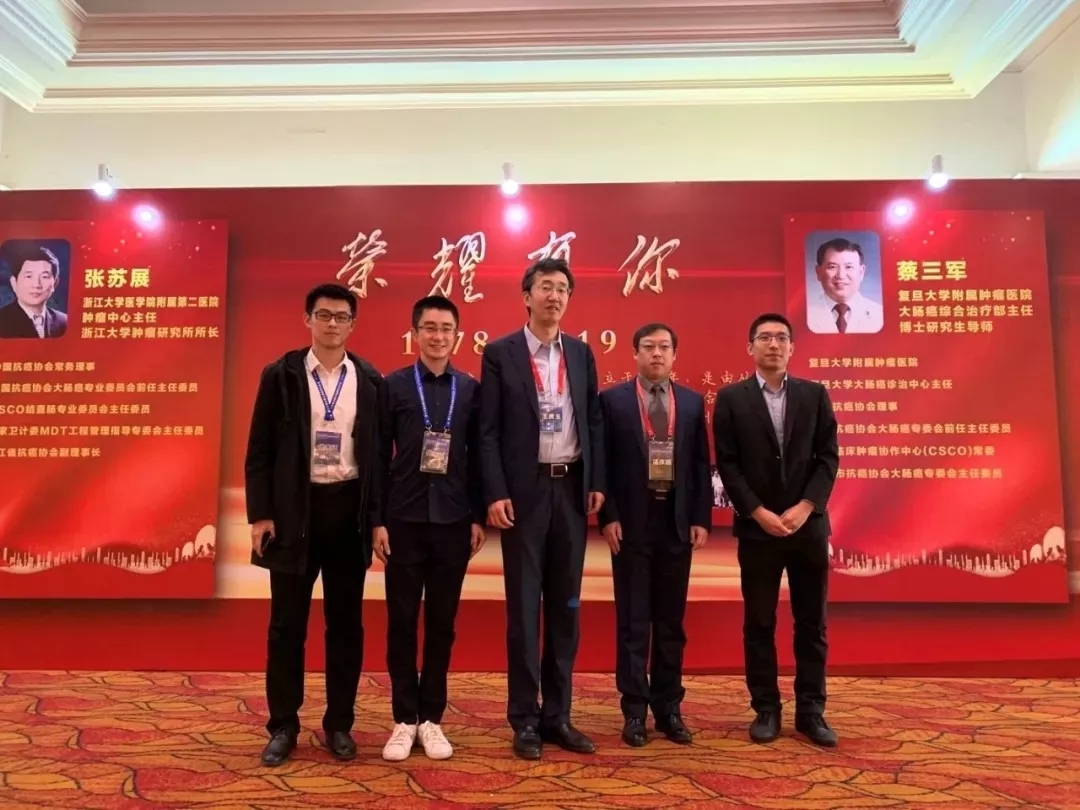 专家合影(从左至右):医科院肿瘤医院刘恩瑞博士、哈医大二院袁子茗博士、王贵玉教授、汤庆超教授、医科院肿瘤医院张明光博士