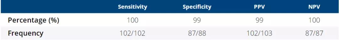 结果显示:在233例患者中,miR Sentinel PCa检测可正确地将89/89例无癌患者和144/144例有癌患者进行分类。miR Sentinel CS检测可正确识别55/56例GG2-5和87/88例GG1前列腺癌患者。该方法的敏感性和特异性均达到了98%,阴性预测值和阳性预测值分别为98%和93%。为了进一步验证,一项对329例PSA升高的受试者(NEPC=139;GG1=88;GG2-5=102)的前瞻性观察研究中,可准确地将134/139受试者诊断为无癌,敏感性和特异性分别达到了98%(195/199)和96%(134/139),阳性预测值和阴性预测值分别为98%和97%。miR Sentinel CS检测可将87/88例患者区分为GG1,102/102例患者区分为GG2-5,敏感性和特异性分别达到了100%(102/102)和99%(87/88),阳性预测值和阴性预测值分别为99%和100%。