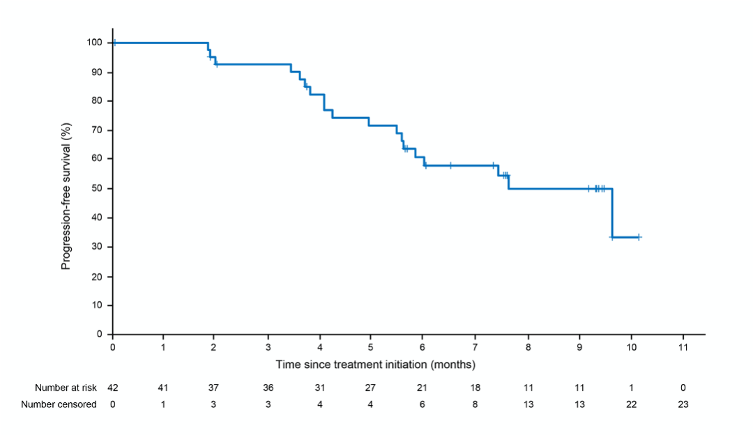 图1 中位PFS为7.6个月(5.8个月-未达到)