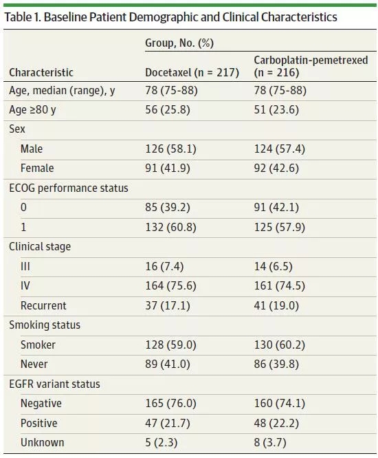 前言:老年患者是一类特殊人群,由于器官功能衰退及药代动力学的改变,很多研究将年龄超过75岁的患者排除入组,使这部分患者的用药数据相对有限。目前,多西他赛单药是常见的治疗选择,那这部分患者还有其他选择的余地吗?来看看近期发表于JAMA Oncology的一项研究。