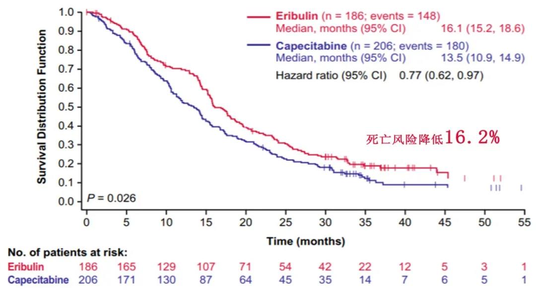 蒽环、紫杉问世二十余年以来,研究人员仍致力于探索新作用机制的化药,尤其是可以有效延长OS、减少毒性、提高生活质量的单药化疗方案。2011年发表于《柳叶刀》杂志上的艾立布林3期EMBRACE研究(STUDY-305研究)显示,相较于医生选择的后线治疗方案,艾立布林可显著改善患者OS(13.1 vs 10.6个月,HR 0.81,P=0.041)[1]。在随后的几项关键试验中,艾立布林则开始与几个常用化疗展开较量。