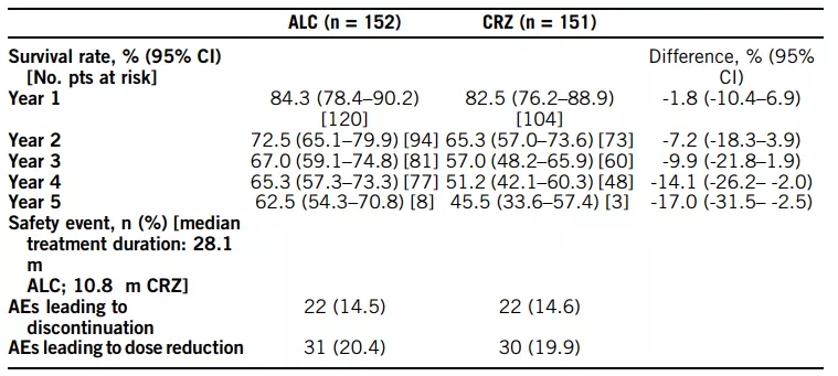 ALEX研究更新5年随访结果(摘要号:9518)