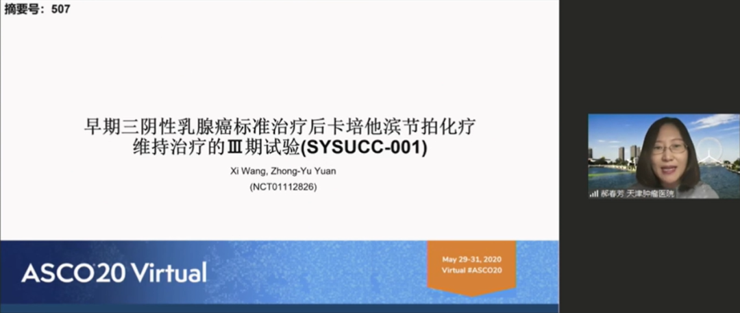 天津医科大学肿瘤医院郝春芳教授对2020ASCO TNBC治疗进展进行了精彩的梳理。郝春芳教授认为对于早期TNBC乳腺癌近年的研究重点主要集中在辅助治疗的化疗/免疫治疗的强化、新辅助后残余肿瘤的化疗/免疫治疗的强化以及新辅助治疗的细化分型的精准化探索方面。其中着重介绍了SYSUCC-001研究,该研究的结论为可手术的TNBC患者卡培他滨节拍化疗维持治疗DFS显著改善且耐受性良好,未观察到非预期的严重不良事件。在晚期TNBC中郝春芳教授介绍了KEYNOTE355研究和KEYNOTE119研究的最新研究结果,概括了免疫治疗的发展历程。