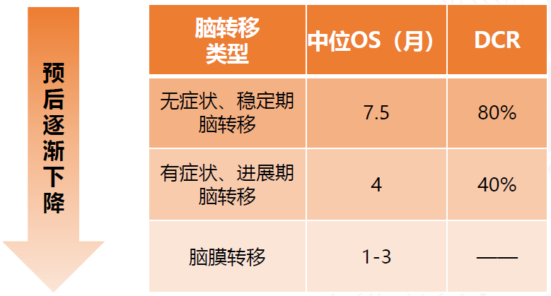 有症状/进展期脑转移/脑膜转移的患者预后更差