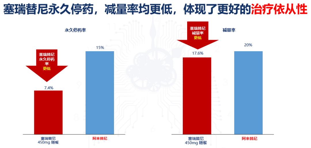 1. 塞瑞替尼减量停药率最低,治疗依从性大幅提高