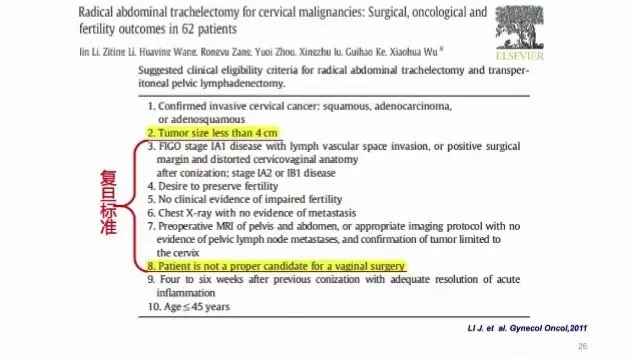 “复旦标准”的创新点包括:肿瘤大小扩大至4cm,ART适应于青少年宫颈葡萄状横纹肌肉瘤,扩大了保育手术的受益人群。“复旦标准”已获得NCCN指南推荐应用至今。