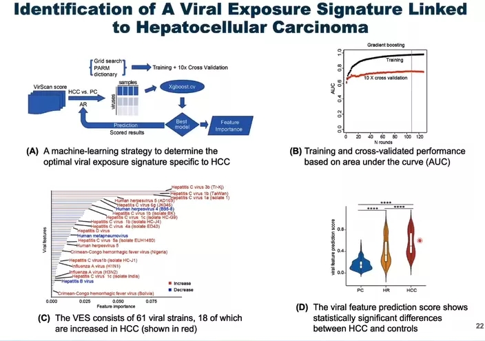 通过对1072例患者的宿主病毒感染图谱进行抗原表位解析研究,表明病毒暴露史可预测高危人群的HCC发生风险,在临床诊断前,应用病毒暴露特征(VES)可以预测HCC的发生,优于AFP的预测性能,有必要进行大样本的前瞻性研究,进一步评估VES用于监测早期HCC的价值。
