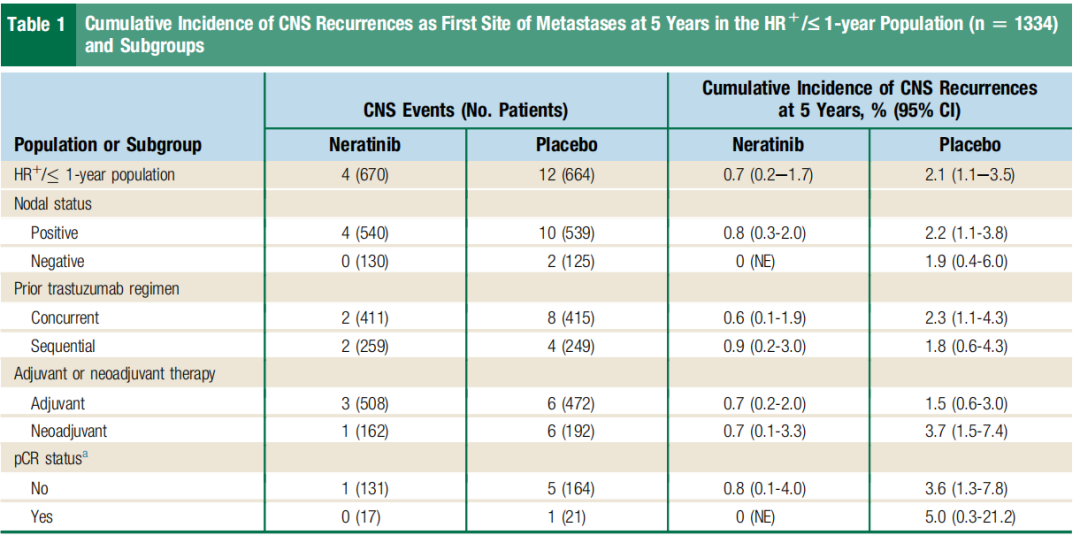 与安慰剂相比,奈拉替尼改善了CNS 5年的累计复发率和CNS-DFS。