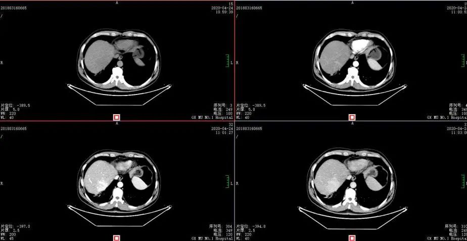 胃癌并肝转移化疗后,肝内转移灶大致同期;