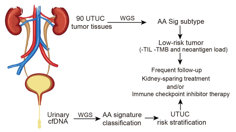 ▲周利群教授团队与中科院北京基因组研究所合作研究:马兜铃酸(AA)突变特征作为一种筛选工具,识别具有治疗意义的低风险UTUC亚类[2]