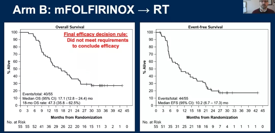 图4. 组B(mFOLFIRINOX-RT组)的OS及无事件生存数据
