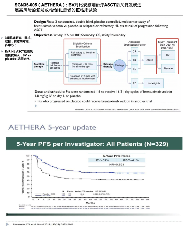 在过去二、三十年间国内经典型霍奇金淋巴瘤(HL)领域存在巨大用药空白,但2020年治疗复发/难治的HL的新药在中国成功获批上市,为中国患者带来希望。其中具有典型代表意义的是我们期待已久的一个靶向CD30的抗体偶联ADC药物-Brentuximab vedotin(BV),在获得中国临床试验结果后,最终成功获批。这个药物对于CD30表达阳性的患者有较好疗效,所以这是一个重要的新药进步(图1)。