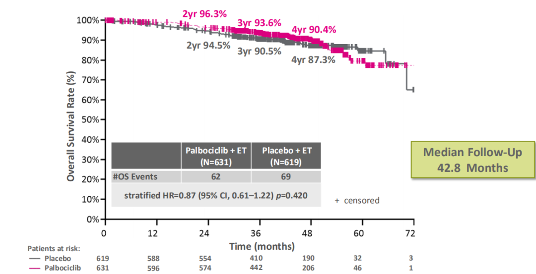 第二,从入组人群特征上看,monarchE研究入组人群更高危可能是其获得阳性结果的原因之一,而PALLAS研究入组人群相对复发风险较低,似乎提示高危患者才可能会从CDK4/6抑制剂联合AI治疗中获益。
