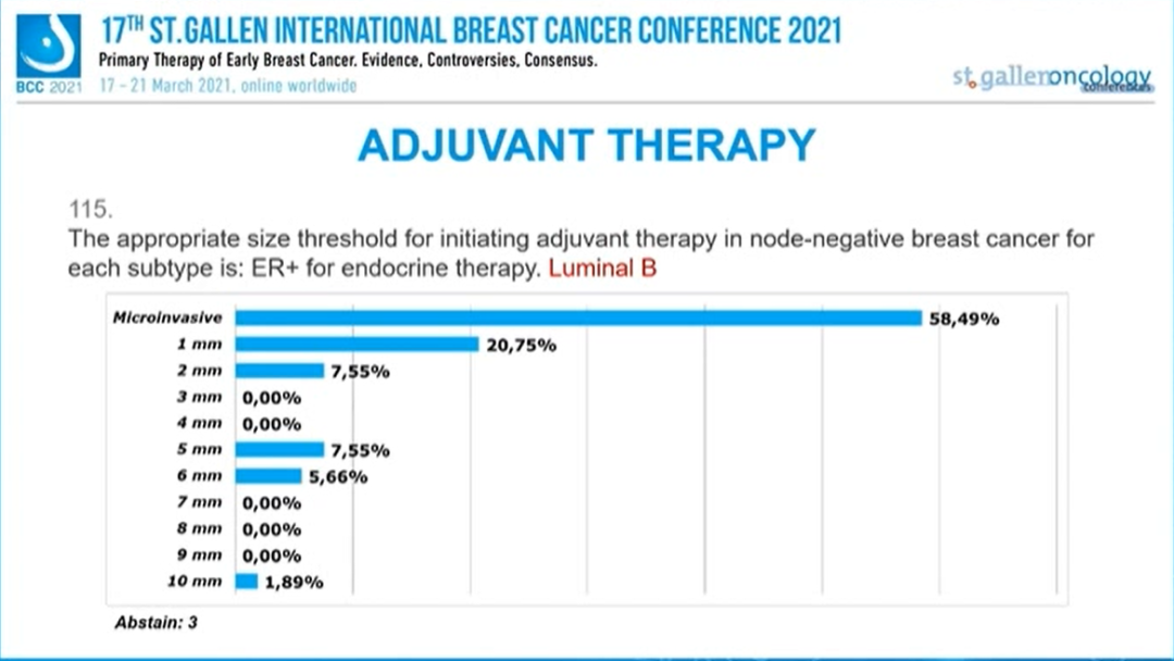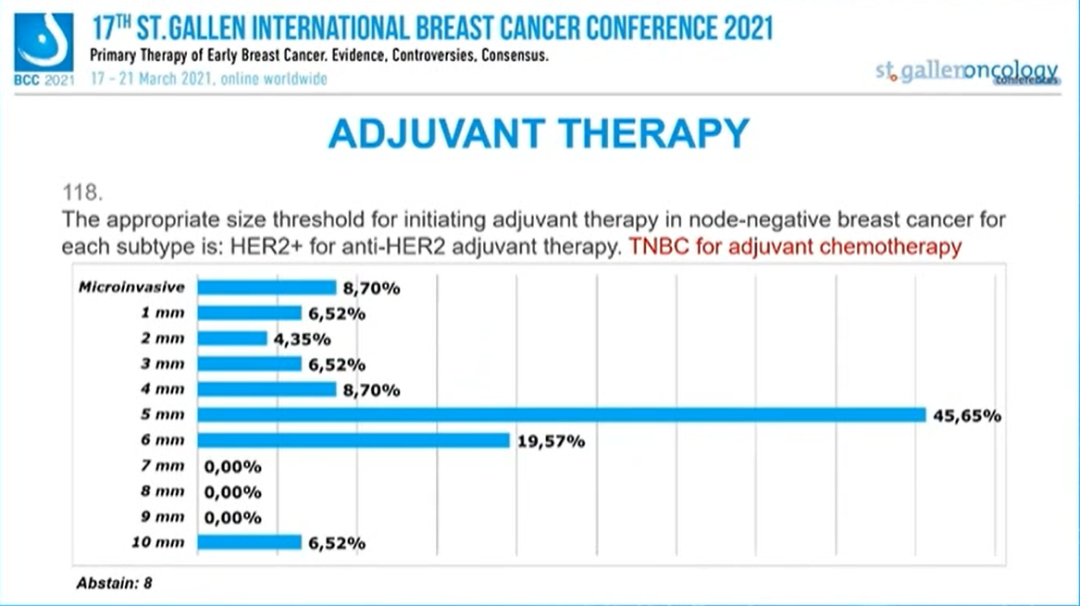 TNBC且淋巴结阴性乳腺癌:辅助治疗合适的阈值是: