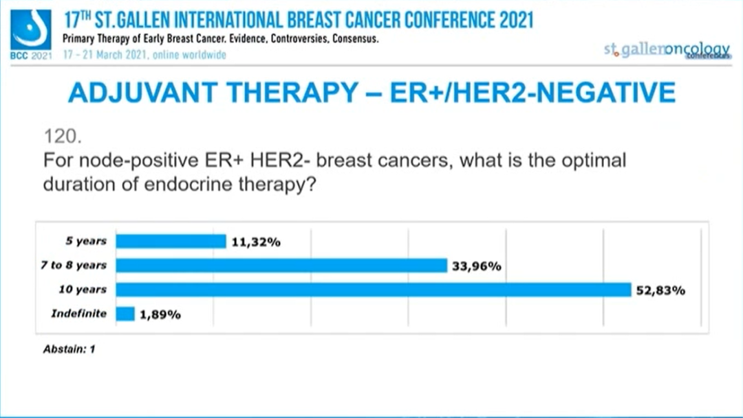 对于ER+/HER2-淋巴结阳性的乳腺癌,内分泌治疗的最佳疗程是?