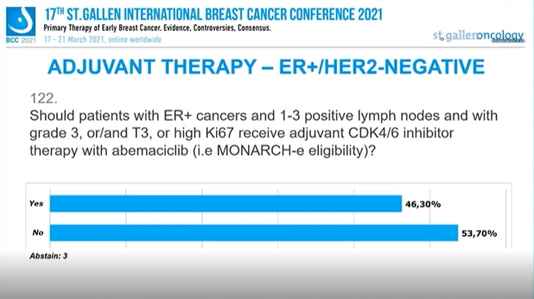 1~3个淋巴结阳性,G3或/和T3,或高Ki67的ER+患者是否应该接受CDK4/6抑制剂阿贝西利辅助治疗(即MONARCH-E入组条件)?