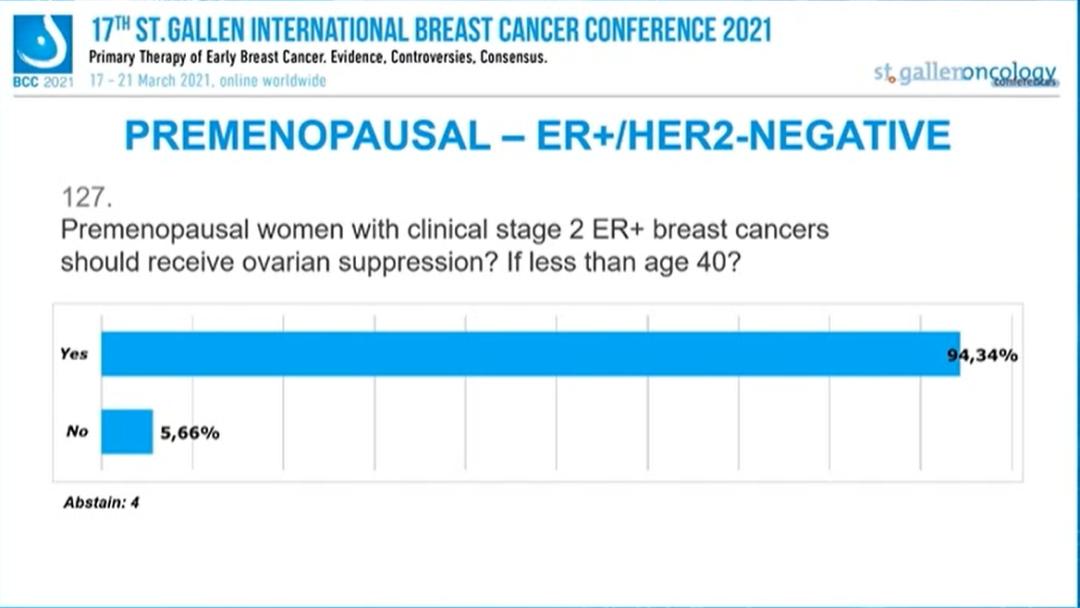 年龄<40岁,临床分期为2期的ER+绝经后乳腺癌患者,应该接受卵巢抑制吗?