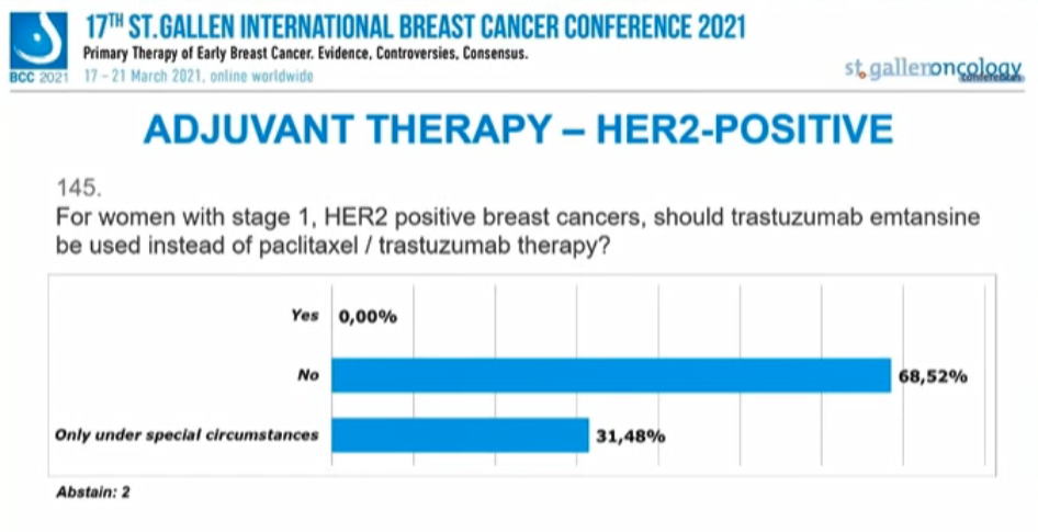 1期的HER2+患者辅助治疗,T-DM1能否替代紫杉醇/曲妥珠单抗?