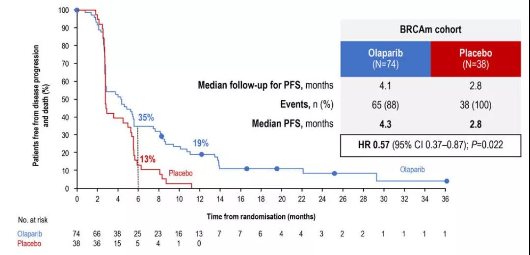 图1.OReO研究:BRCAm队列的PFS K-M曲线