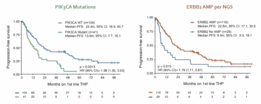 PIK3CA突变、ERBB2扩增对THP治疗PFS的影响